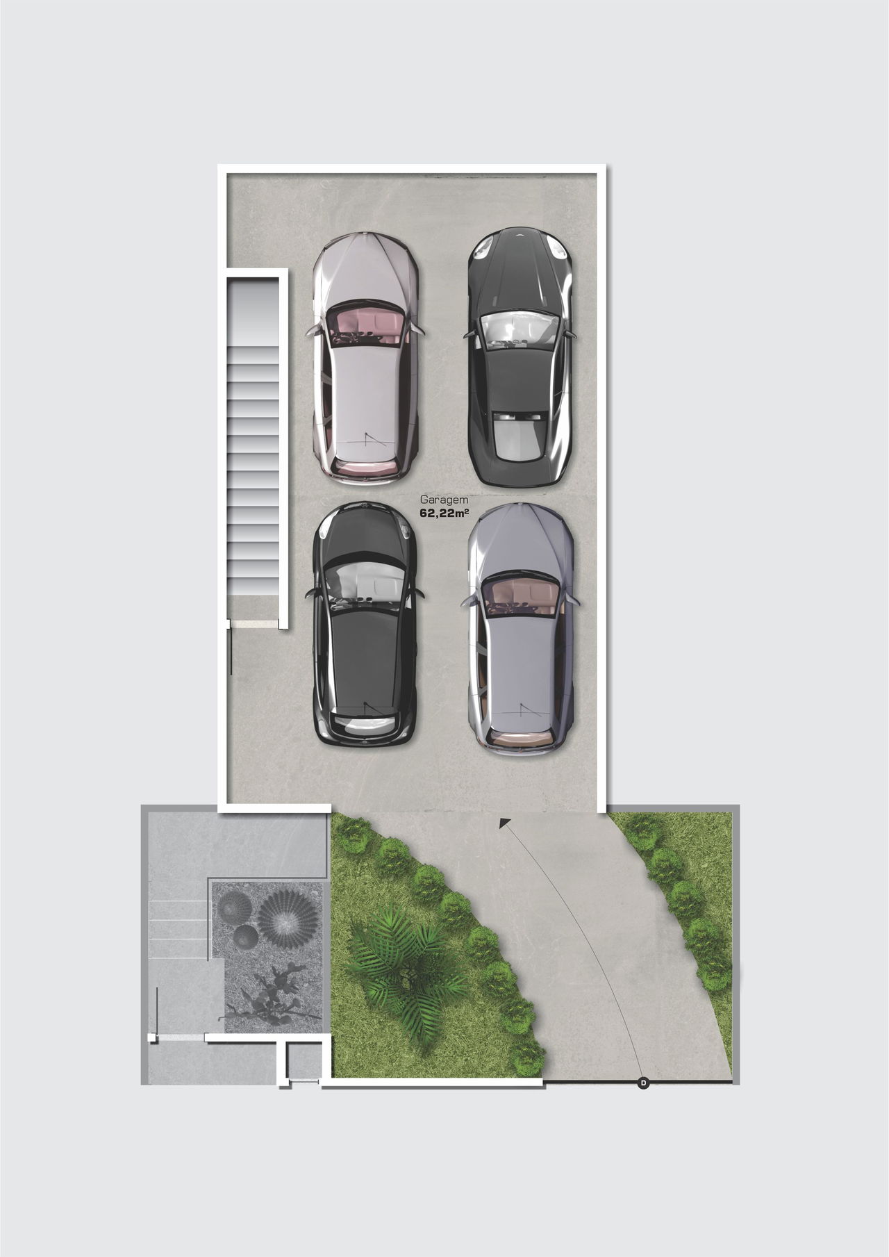Garagem p/ 4 carros cobertos