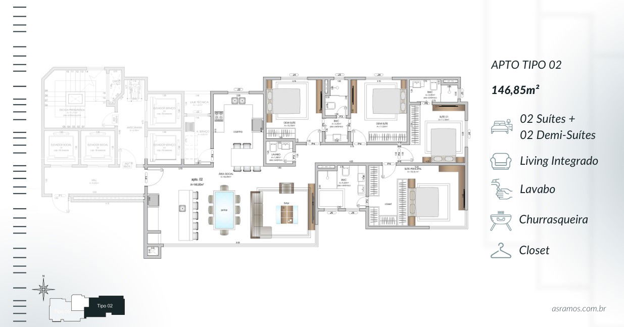 4 Suítes (2 Demi-suítes)